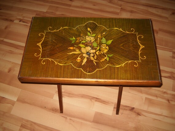Wood Folding Table Bedside 14 Rose Inlay 25 X 15 21 Etsy Osterreich